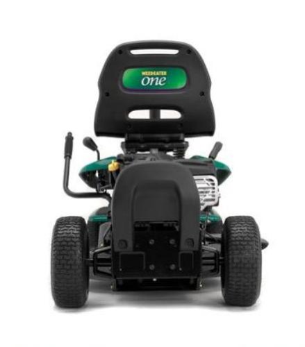 The new Weed Eater One redefines affordability for easy lawn maintenance. Designed from the ground up for YOU, it is the first compact personal riding mower on the market. Every aspect of the design process took into consideration your feedback on what consumers want in a riding mower. The Weed Eater One boasts a powerful Briggs & Stratton engine, a solid 26-inch cutting deck that delivers a precise, even cut and plenty of comfort features for a smooth and enjoyable ride. It's simply the ONE. The Weed Eater One is fully electric start, all you have to do is turn the key. A simple control on the left allows the operator to adjust the cutting height from approximately 1.5 to 4 inches. Features three drive speeds; speed one is for edging, speed two is for regular grass cutting, and three is for faster transport. Release your foot while in any of the three forward gears and you will be in cruise control for a relaxed cut. Spans approximately 36 inches wide, allowing it to easily fit through a standard yard gate, just lift up the deck chute handle. The Weed Eater One stores flatter against the wall in a garage and with its ability to maneuver in tight spaces, it reduces the need to touch up areas with a push mower or string trimmer, saving you time and money on quality results. An intuitive and easy to use pedal allows the operator to control the brake and clutch with one foot. Pressing down applies the brake, while lifting engages the clutch to propel forward. The 26 inch cutting deck is made of 13 gauge steel and can handle all the bumps and bruises without denting. The deeper deck combined with an efficient single blade design allows for superior airflow resulting in a more uniform cut quality and reduced chance of scalping in uneven terrain. Features a wide step-through frame with incorporated non-slip foot rests so you can mount and dismount safely from either side.